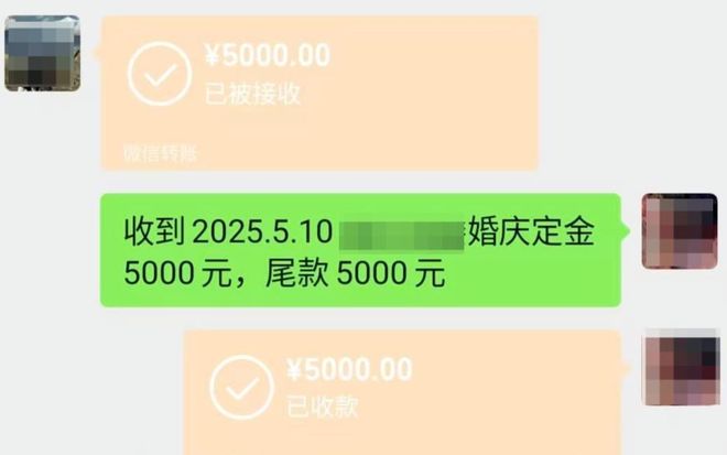 据新郎所说,他与新娘在2025年年初联系了当地一家婚庆公司,双方沟通后达成共识,在2月7号签订合同,他们以总花费1万元的价格聘用婚庆店帮他们安排婚礼,并提前支付5000定金。