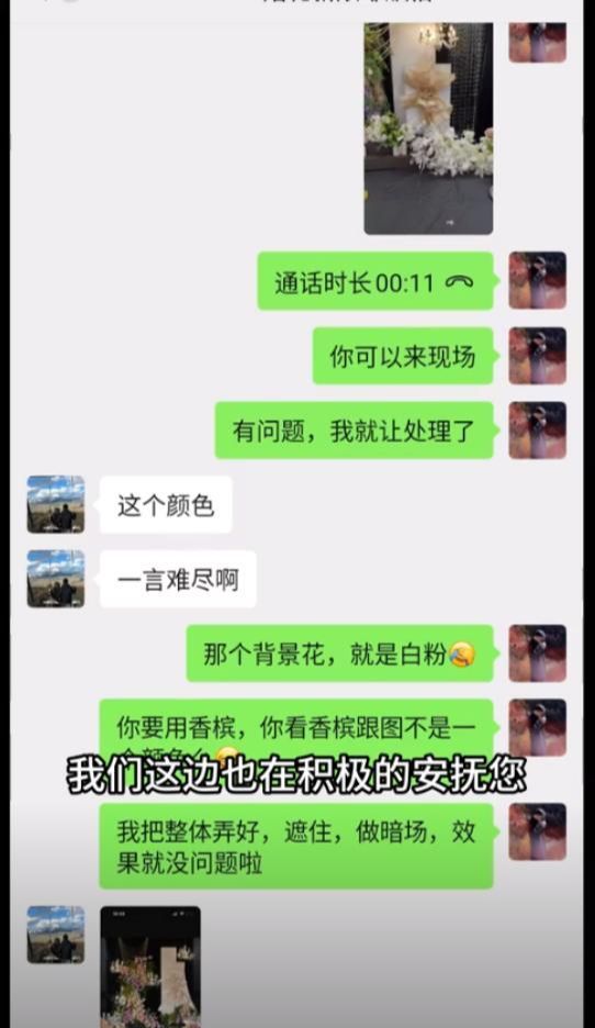 店主声称满足顾客的需求是他们婚庆店的理念,为了证实自己这个说法,她还晒出是个顾客好评的聊天截图。