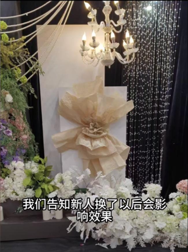 能明白新娘新郎对于婚礼的看重,但是如果彩排时就对布景不满意,其实他们完全可以现场指出进行整改,一边沟通一边整改,效果应该会比通过电话简单描述要好。