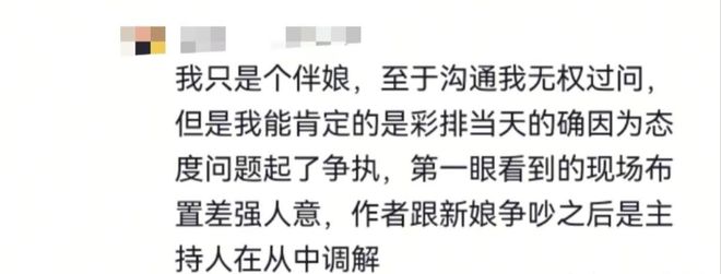 这位网友称婚礼当天因为员工态度问题起过争执,是员工先说新娘没有脑子,毁了自己的婚礼,她怕发生冲突还曾劝新娘息事宁人。