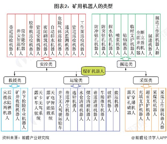 矿山机器人总体上可以分为矿山作业机器人、矿山安控机器人、矿山运输机器人和矿难救援机器人四大类。