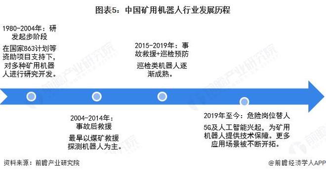 机器人产业是近30年发展起来的新型产业,我国早在“七五”期间就开始组织专家学者对国际先进机器人全面跟踪、研究和探索。在国家863计划等资助项目支持下,对包括喷浆机器人、凿岩机器人、采煤机器人、救灾机器人、机器人矿车等在内的多种矿用机器人进行研究开发。